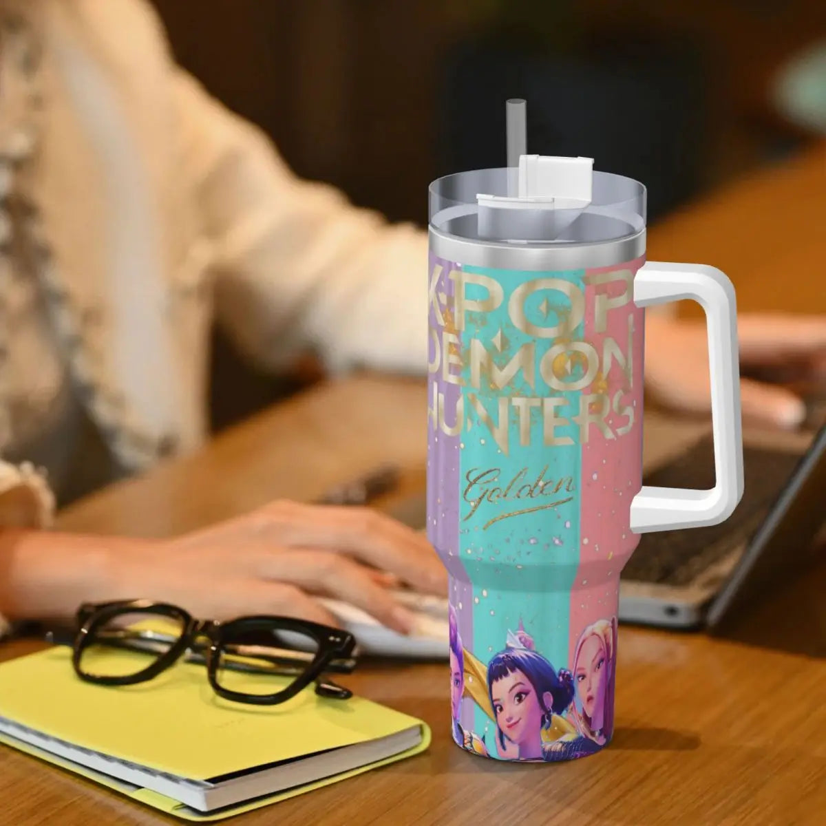 Add a touch of Kpop flair to your daily routine — grab your Demon Hunters Golden Huntrix tumbler today!